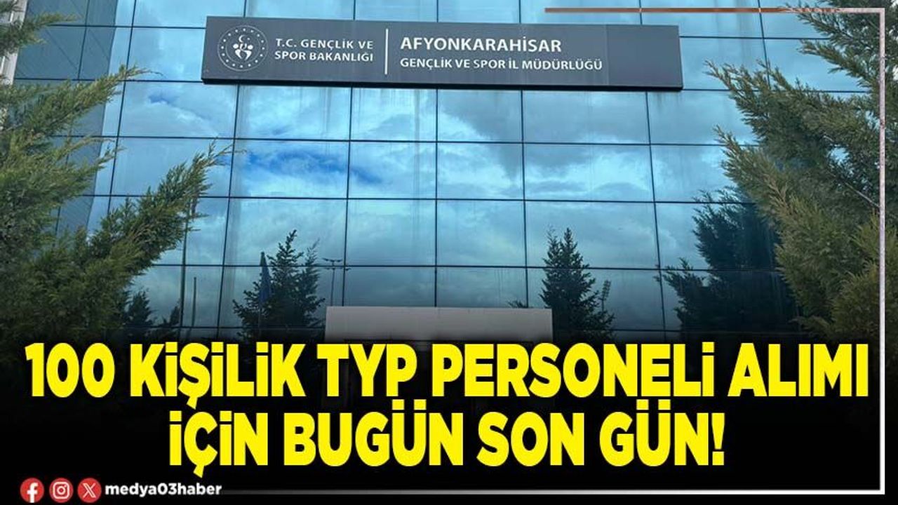 Afyonkarahisar Gençlik ve Spor İl Müdürlüğü bünyesinde bulunan yurt, gençlik ve spor birimlerinde hizmetlerin aksamadan yerine getirilmesi maksadıyla bakım, onarım ve temizlik ihtiyaçlarının giderilmesi faaliyetlerini gerçekleştirmek amacıyla 100 kişilik TYP (Toplum Yararına Program) personeli için başvurular, 30.03.2026-03.04.2026 tarihleri boyunca e-Devlet, ALO 170 ve e-şube üzerinden alınacaktır.