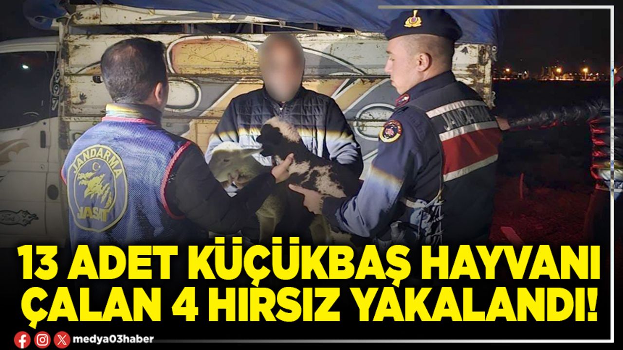 Edinilen bilgilere göre; Afyonkarahisar İl Jandarma Komutanlığı ekipleri Sandıklı ilçesinde meydana gelen 13 adet küçükbaş hayvanın çalınması olayı ile ilgili olarak yaptığı titiz çalışma sonrasında olaya karışan 4 şüpheli şahsı yakaladı. Çalınan 13 adet küçükbaş hayvan ise sahibine teslim edildi.