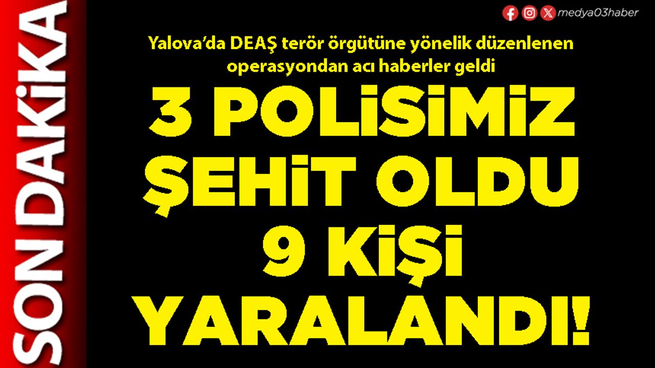 İçişleri Bakanı Ali Yerlikaya, Bakanlıkta yer alan Güvenlik ve Acil Durumlar Koordinasyon Merkezi’nde, (GAMER) Yalova’da emniyet güçleri ile DEAŞ terör örgütü mensupları arasında çıkan çatışmayla ilgili açıklamalarda bulundu. Çatışmada Türk vatandaşı olan 6 terör örgütü mensubunun ölü olarak ele geçirildiğini bildiren Bakan Yerlikaya, şu ifadelere yer verdi: "Son bir ay içerisinde, DEAŞ Terör Örgütüne yönelik yürütülen operasyonlarda 138 şüpheli tutuklanmış, 97 şüpheli hakkında ise adli kontrol kararı uygulanmıştır. Bu kararlılığın bir devamı olarak; bu sabah, 15 ilimizde, 108 ayrı adrese eş zamanlı operasyon düzenlenmiştir. Bu operasyonlardan biri de bu sabah saat 02.00’da Yalova’da gerçekleşmiştir. İsmet Paşa Mahallesi, Seher Sokak’ta bulunan bir adrese düzenlenen operasyon sırasında, DEAŞ’lı teröristler tarafından kahraman polislerimize ateş açılmıştır. Bu hain saldırı sonucunda maalesef 3 kahraman polisimiz şehit olmuştur. Saldırıda 8 polisimiz ve 1 bekçimiz de yaralanmıştır. Teröristlerin bulunduğu evde kadınlar ve çocukların olması nedeniyle operasyon büyük bir hassasiyetle yürütülmüştür. Adreste bulunan 5 kadın ve 6 çocuk sağ olarak tahliye edilmiştir. Çıkan çatışmada 6 terörist ölü olarak ele geçirilmiştir. Bu teröristler Türk vatandaşıdır. Operasyon saat 09.40’da tamamlanmıştır.