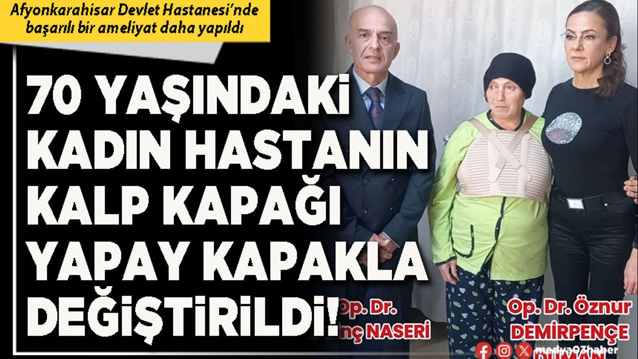 Afyonkarahisar Devlet Hastanesinde gerçekleştirilen başarılı açık kalp ameliyatı ile 70 yaşındaki kadın hasta sağlığına kavuştu. Uzun süredir nefes darlığı şikâyeti bulunan hastada yapılan koroner anjiyografi ve ekokardiyografi tetkikleri sonucunda, kalp damarlarında tıkanıklık ve kalp kapaklarında ileri derecede yetmezlik tespit edildi. Hipertansiyon ve astım bronşiale gibi risk oluşturabilecek ek hastalıkları bulunan hastanın gerekli hazırlıkları titizlikle tamamlanarak ameliyata alındı.