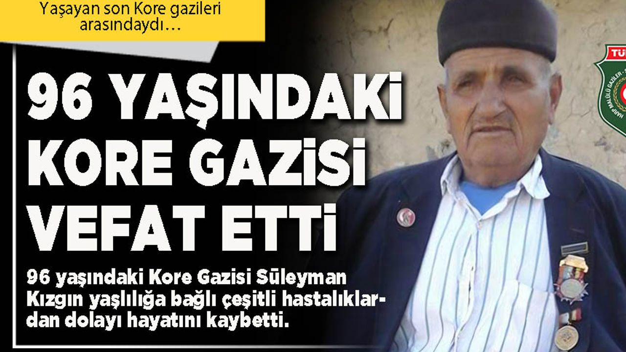 Afyonkarahisarlı 96 yaşındaki Kore Gazisi Süleyman Kızgın yaşlılığa bağlı çeşitli hastalıklardan dolayı hayatını kaybetti.