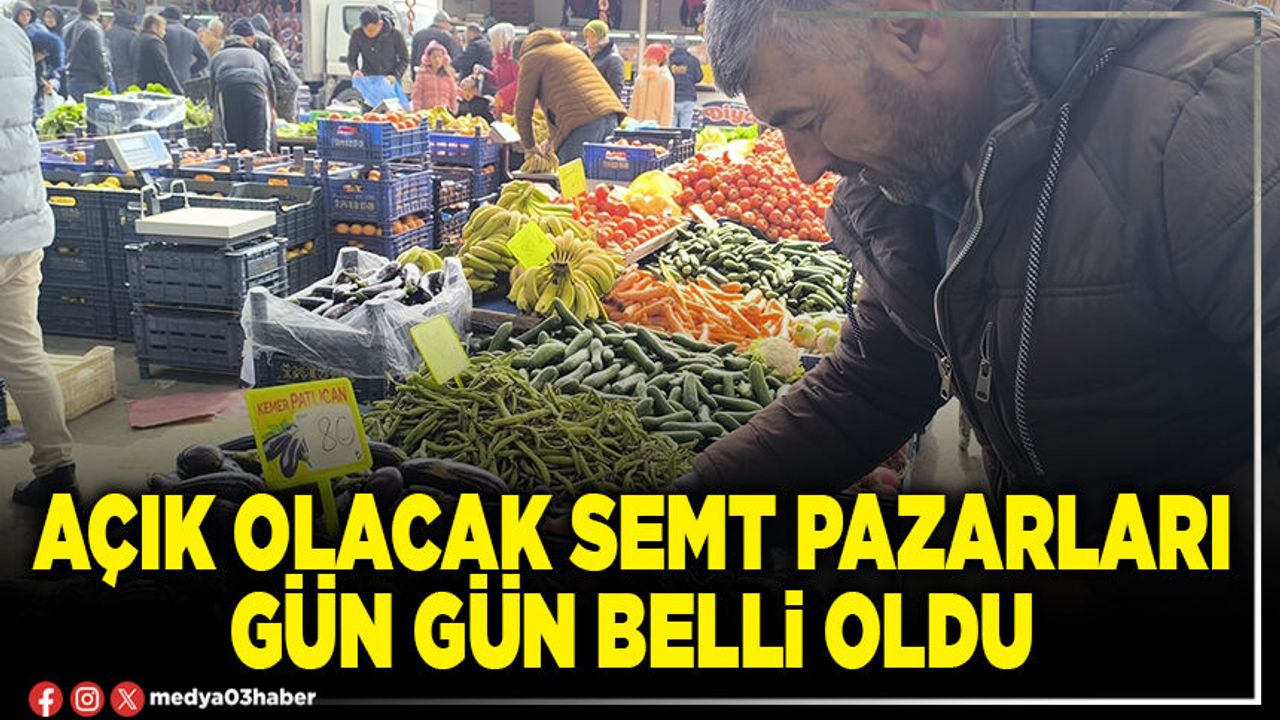 Afyonkarahisar’da Ramazan Bayramı öncesi Pazartesi, Salı, Çarşamba ve Perşembe günü açık olacak pazarlar yerleri belli oldu. Belediye’den yapılan açıklamaya göre gün gün açık olacak semt pazarları şöyle: