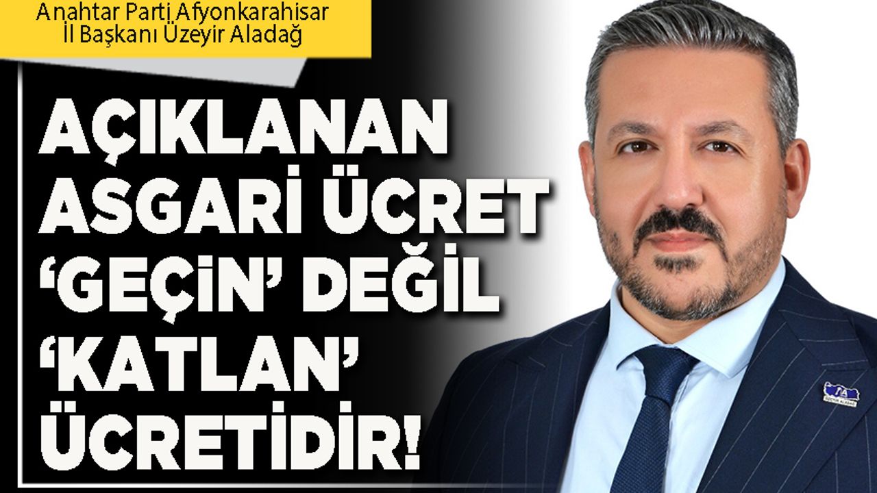 Konuyla ilgili yazılı bir açıklama yapan Anahtar Parti Afyonkarahisar İl Bakanı Üzeyir Aladağ şunları söyledi: “Bugün açıklanan asgari ücret, ne yazık ki emekçinin sofrasındaki ekmeği büyütmemiş, yalnızca yoksulluğun resmiyetini ilan etmiştir. Açlık sınırının dahi altında kalan bu rakam, milyonlarca çalışana “geçin” değil, “katlan” denildiğinin açık göstergesidir.