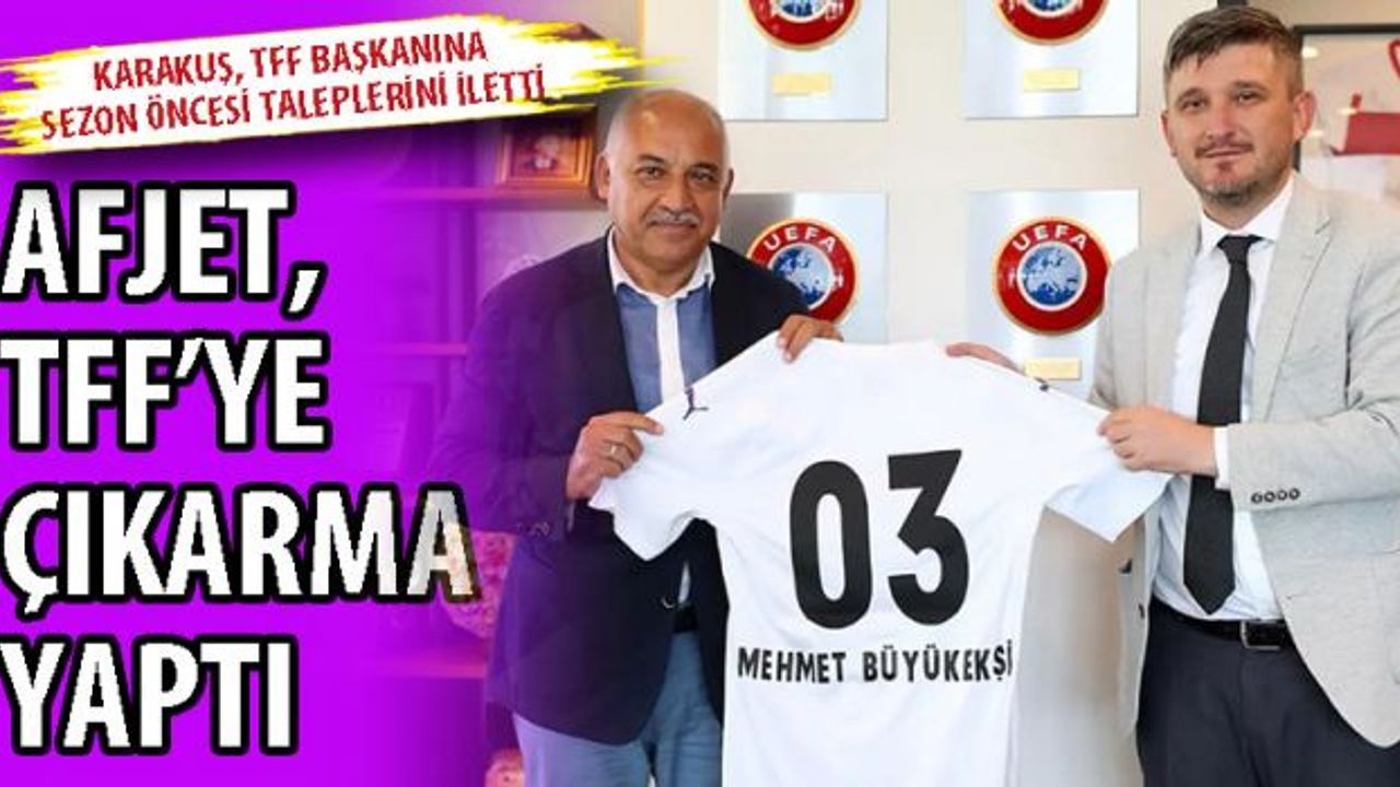 Pazar günü deplasmanda Nazilli Belediyespor maçıyla 2022-2023 futbol sezonuna start verecek olan Afjet Afyonspor’da bu karşılaşmanın hazırlıkları aralıksız sürerken Kulüp Başkanı Süleyman Karakuş ve yönetim kurulu üyeleri, TFF Başkanı Mehmet Büyükekşi’yi makamında ziyaret etti. Kulüp Başkanı Karakuş, Büyükekşi’ye sezon öncesi lige dair taleplerini iletti.