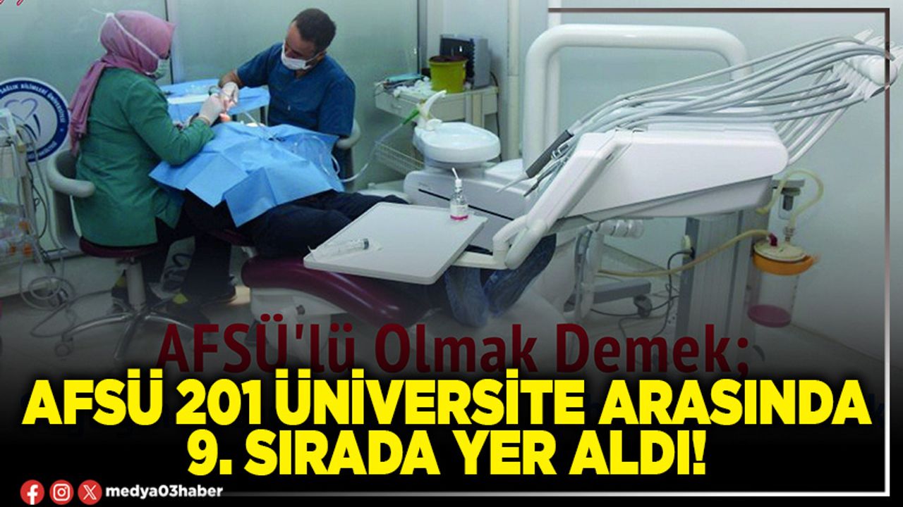 YÖK tarafından, 67 farklı gösterge doğrultusunda hazırlanan ve Türkiye’deki 201 üniversiteye ait analizlere yer verilen raporda AFSÜ, başarılı sonuçlara imza attı. AFSÜ mezunların istihdama katılma oranı, ulusal ve uluslararası iş birliği ile hazırlanmış bilimsel yayın oranı ve dezavantajlı gruplara yönelik etkinlik sayısı bakımından, Türkiye’nin ilk 20 üniversitesi arasına girdi.