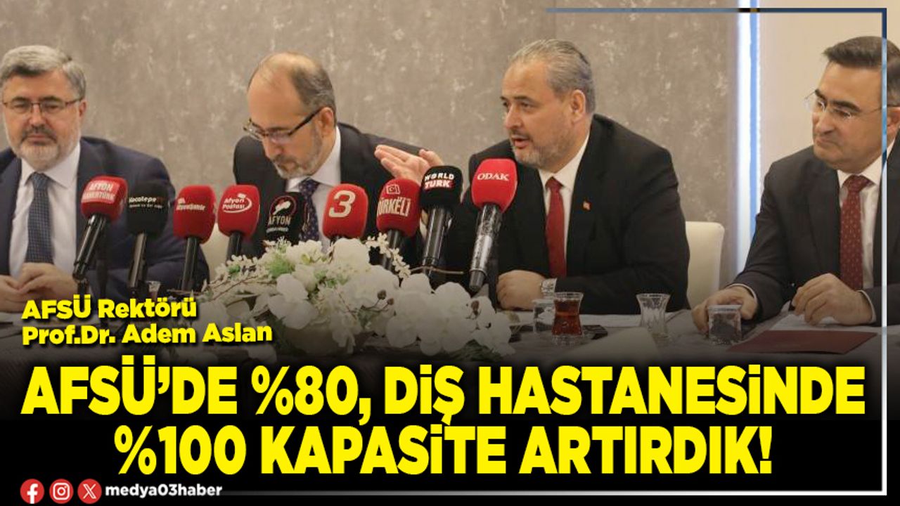 AFSÜ Hastanesinin kapasite artışı ve AFSÜ Diş Hastanesindeki yeni uygulamaların en hızlı şekilde tamamlandığını hatırlatan Prof. Dr. Aslan, “AFSÜ Hastanemizde kapasiteyi %80 oranında artırdık. AFSÜ Diş Hastanemizde de %100’e yakın bir kapasite artışı var. Hatta ilk muayenede randevuyu kaldırdık. Herhangi bir diş çekimi, apse ya da ameliyat gerekliliği durumunda aynı gün arkadaşlarımız bu hizmeti veriyorlar. Yine aynı şekilde mesai bitiminden sonra vatandaşlarımız AFSÜ Diş Hastanemizin acil kliniğinde tedavi olabiliyor.”