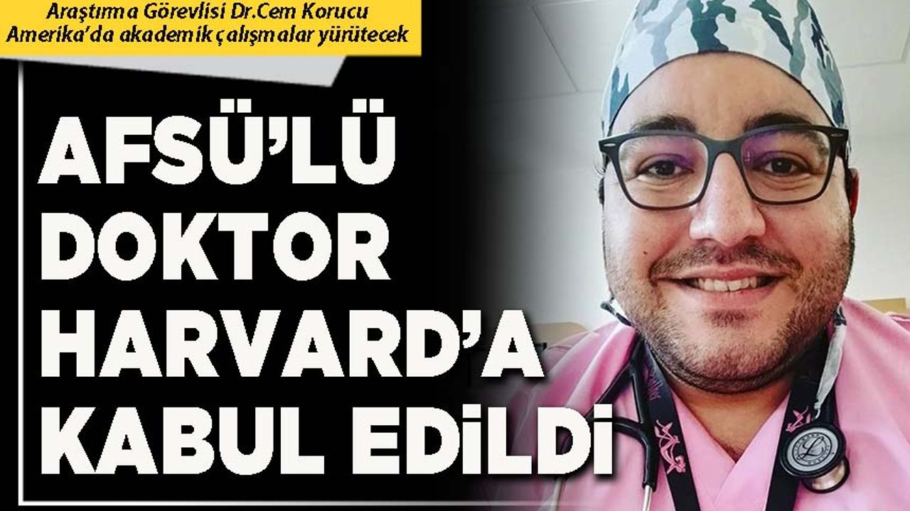 AFSÜ Tıp Fakültesi Kardiyoloji Ana Bilim Dalından ve AFSÜ Hastanesi Kardiyoloji Kliniği uzman hekimlerinden Arş. Gör. Dr. Cem Korucu, dünyanın en saygın sağlık merkezlerinden biri olan ABD’deki Harvard Üniversitesi – Massachusetts General Hospital’ın klinik ihtisas (fellowship) programına kabul edildi.