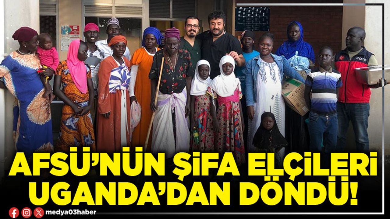 AFSÜ’nün şifa elçisi Doktoru ve hemşiresi Uganda’dan döndü. Uganda’nın Yumbe bölgesinde gerekli altyapı olmadığı için halkın önemli sağlık sorunları ile karşı karşıya olduğunu belirten Doç. Dr. Ay, “Katarakt gibi 15 dakikada tedavi edilebilecek hastalıklar sebebiyle pek çok insan görme yetisini kaybetmiş durumda ve Türkiye’den gelen bu destek, onların hayatında büyük değişikliklere vesile oluyor.” dedi.