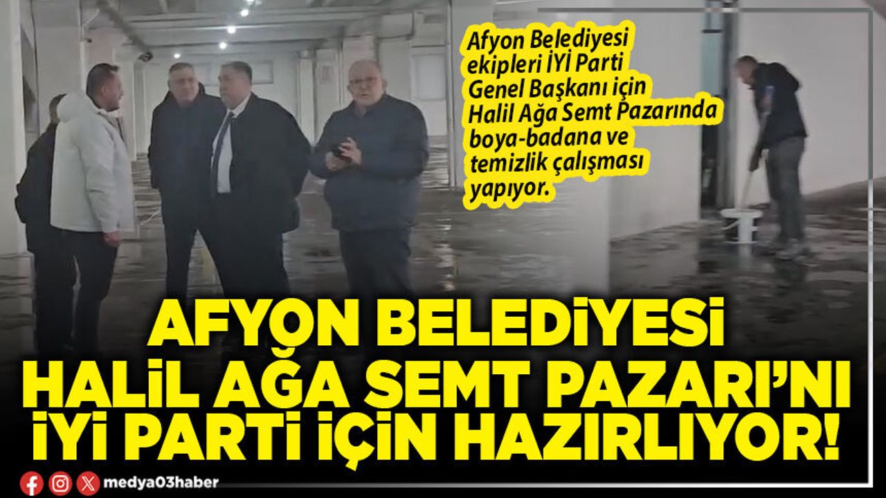 Afyonkarahisar’da Halil Ağa Kapalı Semt Pazarı, Cumartesi günü iftar programı için ilimize gelecek olan İYİ Parti Genel Başkanı Müsavat Dervişoğlu için hazırlanıyor. Kapalı Pazar yerinde boya-badana başta olmak üzere temizlik çalışmaları aralıksız devam ederken, İl Başkanı Muhammet Mısırlıoğlu Belediye ekiplerince yapılan çalışmaları yerinde inceledi.