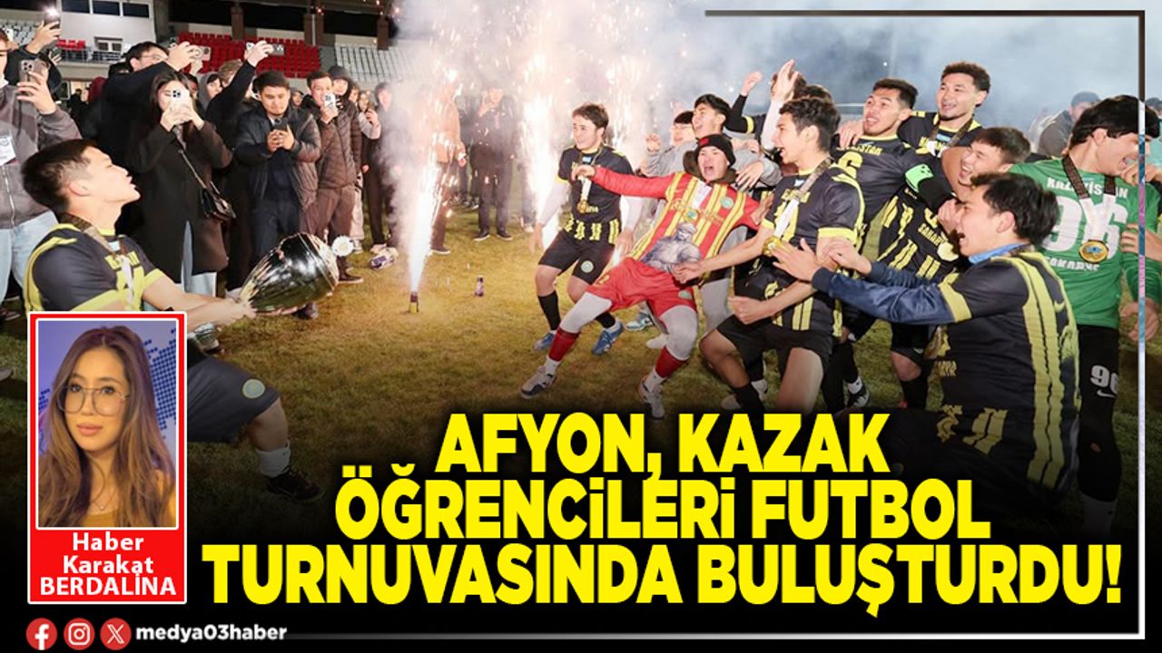 Türkiye’nin çeşitli Üniversitelerinde öğrenim gören Kazak öğrenciler Afyonkarahisar’da düzenlenen futbol turnuvasında bir araya geldi. Kazak öğrencileri yeşil sahada buluşturan organizasyon renkli görüntülere sahne olurken, şampiyonluk kupası Sakarya’da öğrenim gören Kazak öğrencilerin oldu.