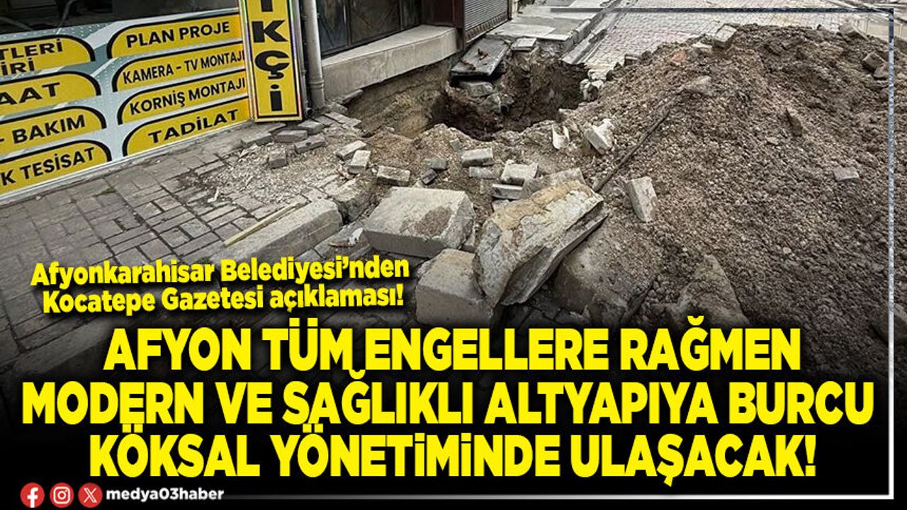 Bu sorunun daha çözümü Sayın Burcu Köksal yönetimindeki Belediyemize nasip olacaktır. Bu sokakta yaşayan ve hizmet bekleyen kıymetli hemşehrilerimiz müsterih olsun; tüm engelleme girişimlerine rağmen hak ettiğiniz modern ve sağlıklı altyapı, Sayın Burcu Köksal yönetimindeki Afyonkarahisar Belediyesi tarafından en kısa sürede sizlere ulaşacaktır.” ifadelerine yer verildi.