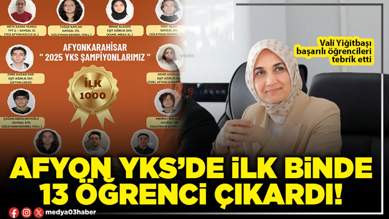 Öğrencileri tebrik eden Vali Doç. Dr. Kübra Güran Yiğitbaşı, “Afyonkarahisar’ımızdan, 2025 YKS’de Türkiye genelinde ilk 1000’e girerek hepimizi gururlandıran sevgili öğrencilerimizi yürekten tebrik ediyorum. Bu büyük başarıda emeği geçen başta İl Milli Eğitim Müdürümüz ve tüm gayretli idarecilerimize, fedakâr öğretmenlerimize ve her daim evlatlarının arkasında duran değerli ailelerine teşekkür ediyorum. İnanıyorum ki bu azimli ve idealist gençlerimiz ülkemizin geleceğinde anlamlı ve güzel izler bırakacak. Vatanını, milletini, bayrağını her zaman gururla temsil edecek. Bütün gençlerimizin yolu ve bahtı açık olsun” dedi.