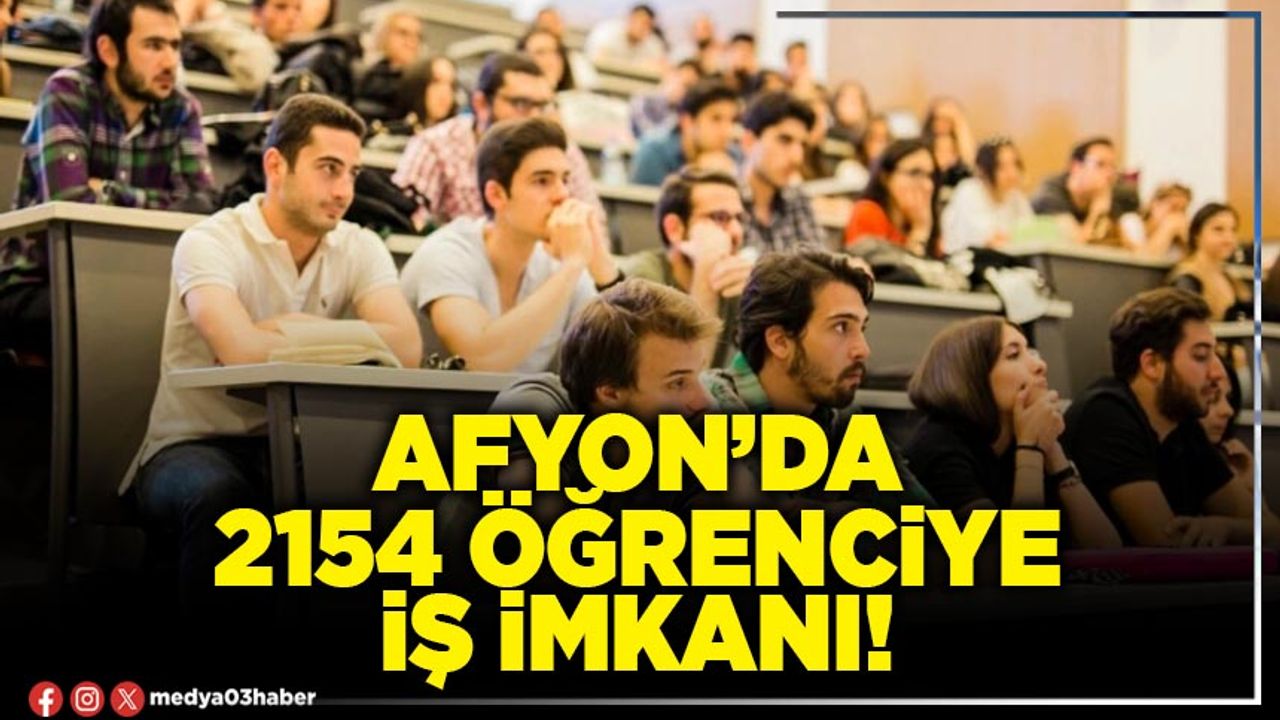 Afyonkarahisar’da AKÜ, AFSÜ ve İŞKUR arasında yapılan protokol sayesinde İŞKUR Öğrenci programı kapsamında 2154 öğrenciye iş imkanı sunulacak. Başvurular 22 Ekim tarihinde başlayıp 26 Ekim tarihinde sona erecek. Noter kurası sonrasında öğrenciler 17 Kasım - 22 Mayıs tarihleri arasında çalışacak.