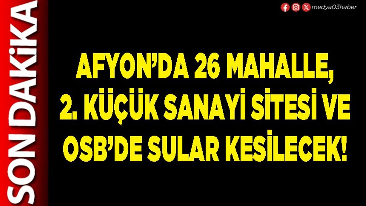 Konuyla ilgili Afyonkarahisar Belediyesi’nden yapılan açıklama şöyle: “Fakıpaşa Mahallesinde bulunan şehrimizin su dağıtımını sağlayan 600'lük ana boruda bir arıza meydana gelmesi nedeniyle 22 Aralık 2025 (Pazartesi) tarihinde tamirat çalışması başlatılacak olup, 09.00-17.00 saatlerinde çalışmalar tamamlanıncaya kadar; Marulcu, Cumhuriyet, Dumlupınar, Dervişpaşa, Karaman, Kasımpaşa, Kayadibi, Mecidiye, Dairecep, Hamidiye, Hattat Karahisar, Ali Çetinkaya, Yarenler, Burmalı, Yunus Emre, Hasan Karaağaç, Yenice, Sahipata, Hoca Ahmet Yesevi, Veysel Karani, Karşıyaka, Selçuklu, Yeşilyurt, Osmangazi, Battalgazi, Erenler, Akçin Mahalleleri ve 2. Küçük Sanayi ile Organize Sanayi Bölgesine su verilmeyecektir.” ifadelerine yer verildi.
