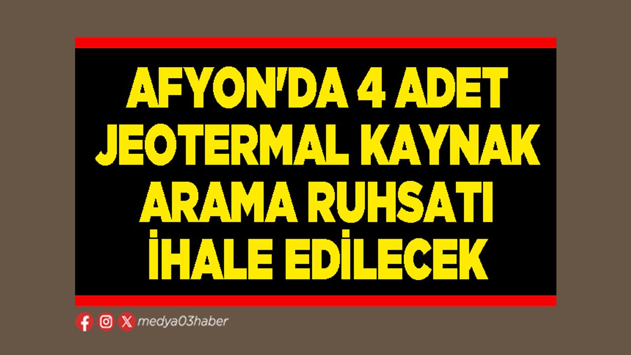 5686 Sayılı Jeotermal Kaynaklar ve Doğal Mineralli Sular Kanununun 10. maddesinin 1. fıkrası (c) bendi ve aynı Kanuna bağlı Uygulama Yönetmeliğinin 17. maddesi hükümleri kapsamında, aşağıda bilgileri verilen 4 (Dört) Adet Jeotermal Kaynak Arama Ruhsat sahası, 03.12.2025 tarihinde saat 11.00’de sırasıyla ayrı ayrı 2886 sayılı Kanunun 45. maddesine göre Açık Teklif (Artırma Usulü) ile ihalesi yapılacaktır.