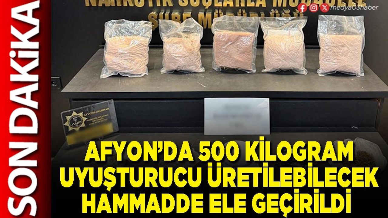 Edinilen bilgilere göre; Afyonkarahisar Emniyet Müdürlüğü görevlileri bir şahsın ikametgahına düzenlediği operasyonda 5 kilo 100 gram uyuşturucu hammaddesi (500 kilogram üretilebilen madde), 43,5 gram uyuşturucu madde, 1 adet adet hassas terazi ele geçirildi.