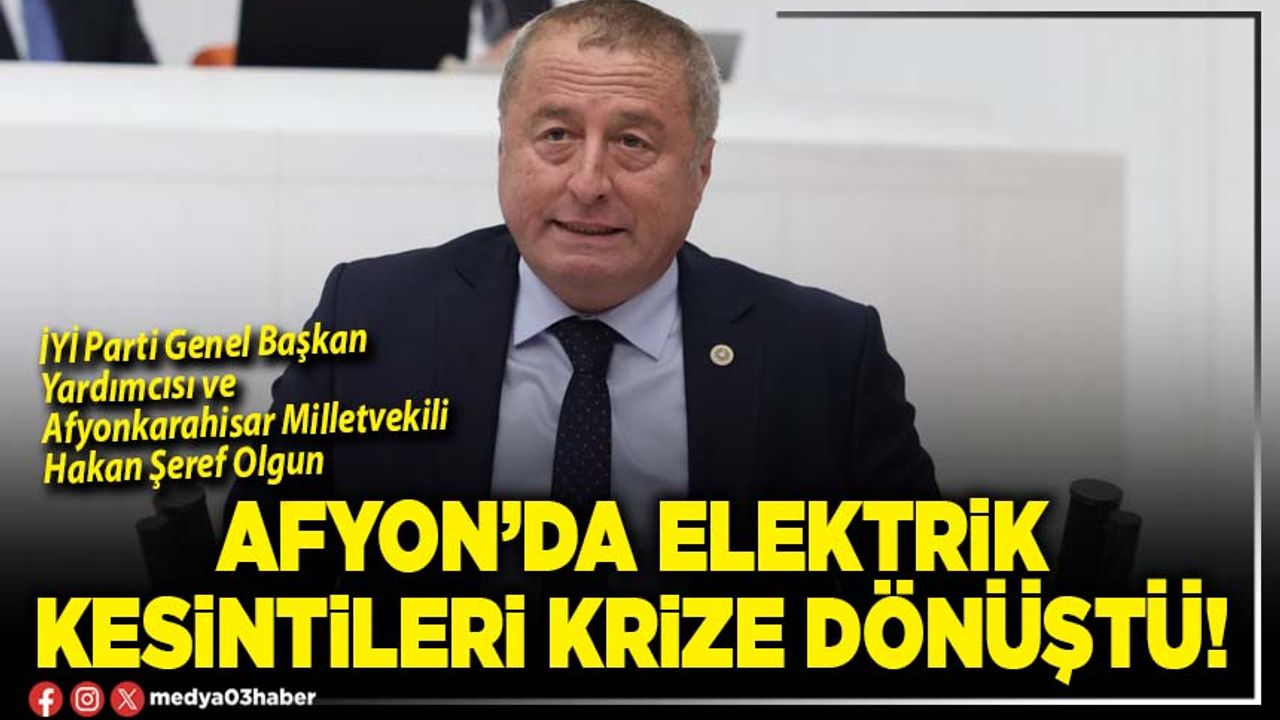 Afyonkarahisar genelinde yaşanan elektrik kesintilerini sert sözlerle eleştiren İYİ Parti Genel Başkan Yardımcısı ve Afyonkarahisar Milletvekili Hakan Şeref Olgun, birçok mahallede yaşanan kesintiler nedeniyle vatandaşların kış ortasında ciddi mağduriyet yaşadığını söyledi.