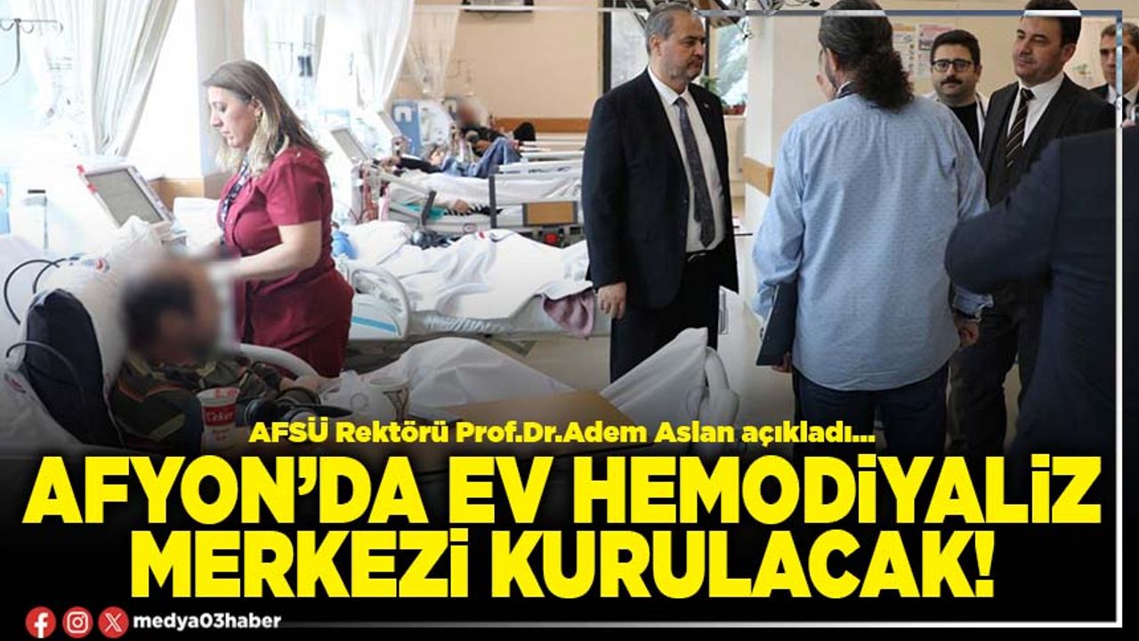 AFSÜ bünyesinde, kronik böbrek hastalarının tedavi konforunu artıran ev hemodiyalizi konusunda hizmet verecek bir merkezin faaliyete geçirilmesi konusunda gerekli adımları attıklarını belirten Prof. Dr. Aslan, “AFSÜ Hastanesi Ev Hemodiyalizi Merkezi kurulması amacıyla gerekli yasal başvuru süreçlerini başlatmış bulunuyoruz. İnşallah en kısa sürede bu alanda da hastalarımıza AFSÜ kalitesinde hizmet vermeyi hedefliyoruz.” dedi.