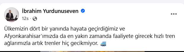 Yurdunuseven, “Ülkemizin dört bir yanında hayata geçirdiğimiz ve Afyonkarahisar’ımızda da en yakın zamanda faaliyete girecek hızlı tren ağlarımızla artık trenler hiç gecikmiyor.” ifadelerine kulandı.