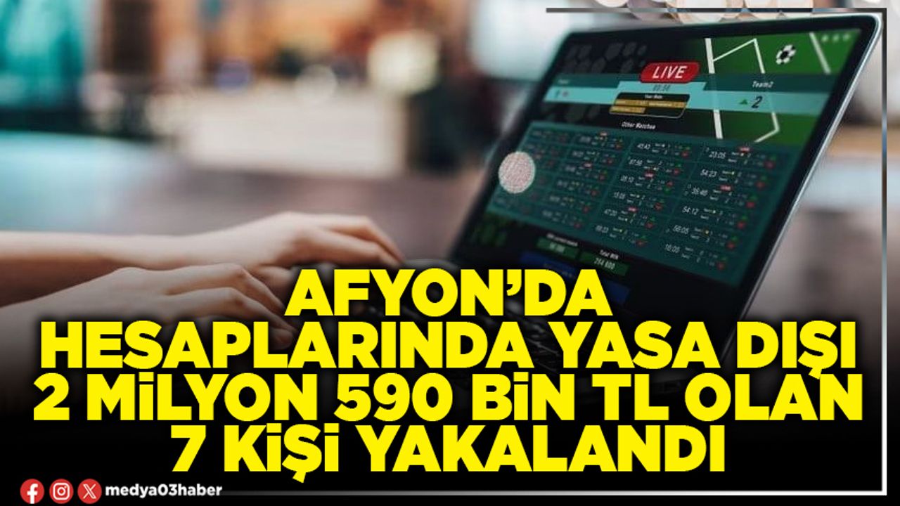 Edinilen bilgilere göre; Afyonkarahisar İl Emniyet Müdürlüğü görevlileri bir bahis sitesi üzerinden yasa dışı bahis ve sanal kumar oynanmasında para nakline aracılık eden, hesaplarında 2.590.000,00 TL işlem hacmi bulunan 7 şüpheli şahıs hakkında adli işlem yaptı.
