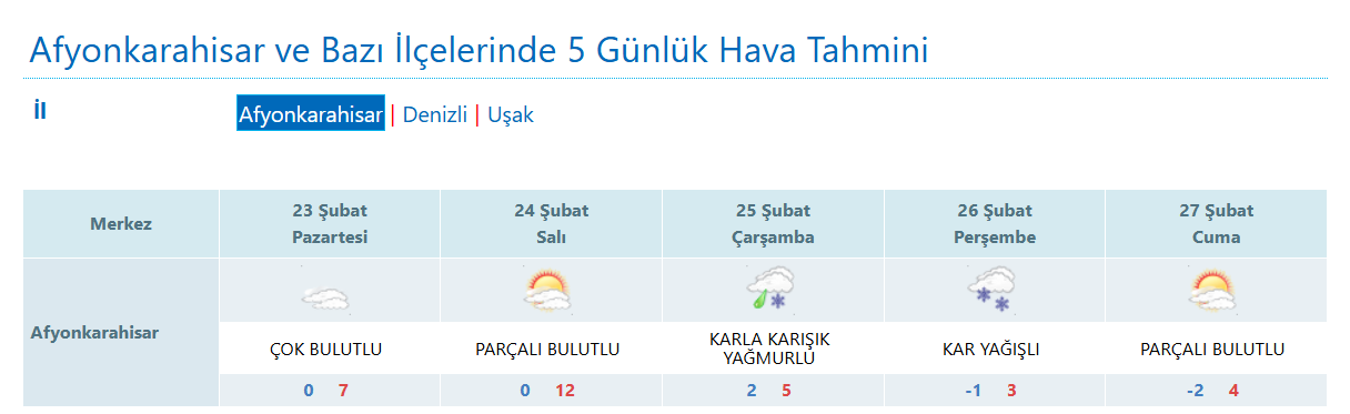 Edinilen bilgilere göre; Çarşamba günü Afyonkarahisar'da karla karışık yağmur beklenirken, Perşembe günü ise kar yağışı bekleniyor. Kar yağışının ilimiz genelinde etkili olacağı tahmin ediliyor.
