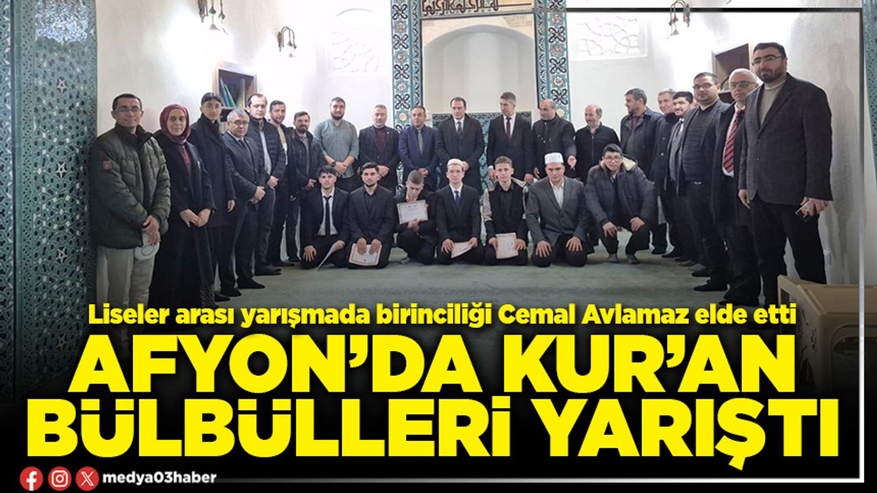 Yarışma sonucunda; Afyonkarahisar Merkez Anadolu İmam Hatip Lisesi öğrencisi Cemal Avlamaz birinci, Bolvadin Anadolu İmam Hatip Lisesi öğrencisi Mustafa Çürük ikinci, Afyonkarahisar Hattat Ahmet Karahisari Anadolu İmam Hatip Lisesi öğrencisi Yunus Emre Bilgin üçüncü oldu.