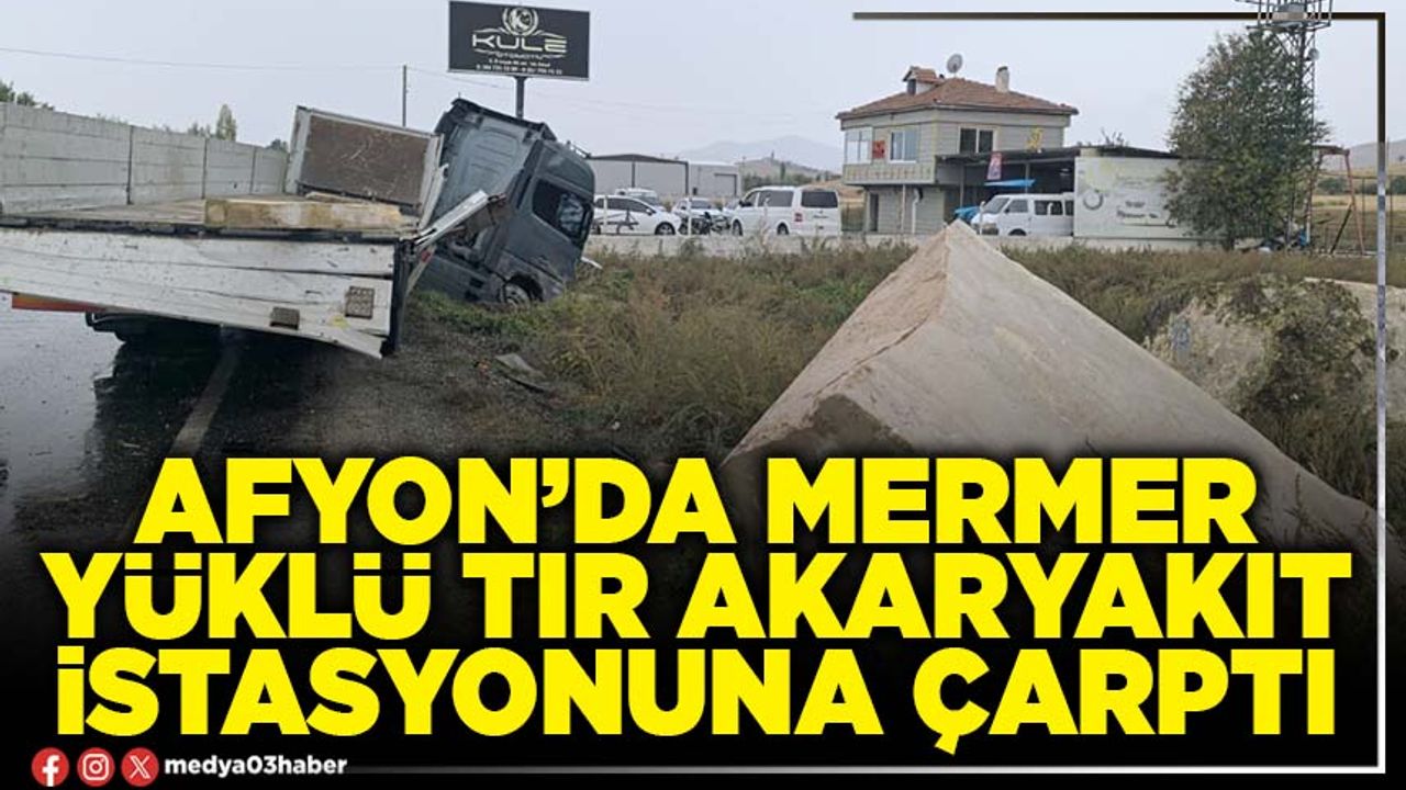 Afyonkarahisar'da tonlarca ağırlıktaki mermer yüklü tırın kayarak bir akaryakıt istasyonunun istinat duvarına çarparak durabildiği anlar saniye saniye güvenlik kameralarına yansırken, şans eseri olayda ölen ya da yaralanan olmadı.