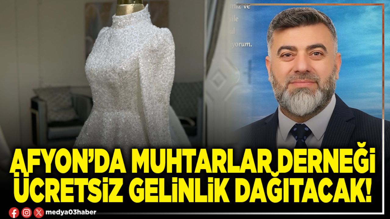 Sosyal sorumluluk projelerine verdiği destekle takdir toplayan Afyonkarahisar Muhtarlar Derneği ihtiyaç sahibi ailelere seslendi. Ellerinde olan gelinlikleri ihtiyaç sahibi ailelere ulaştırmak istediklerini açıklayan Dernek Başkanı Suat Uygur, “İhtiyaç sahibi ailelere dağıtılmak üzere elimizde sıfır ve ikinci el gelinlik bulunmaktadır. Mahallenizdeki ihtiyaç sahiplerine ulaştırmak için bizimle iletişime geçin.” çağrısında bulundu.
