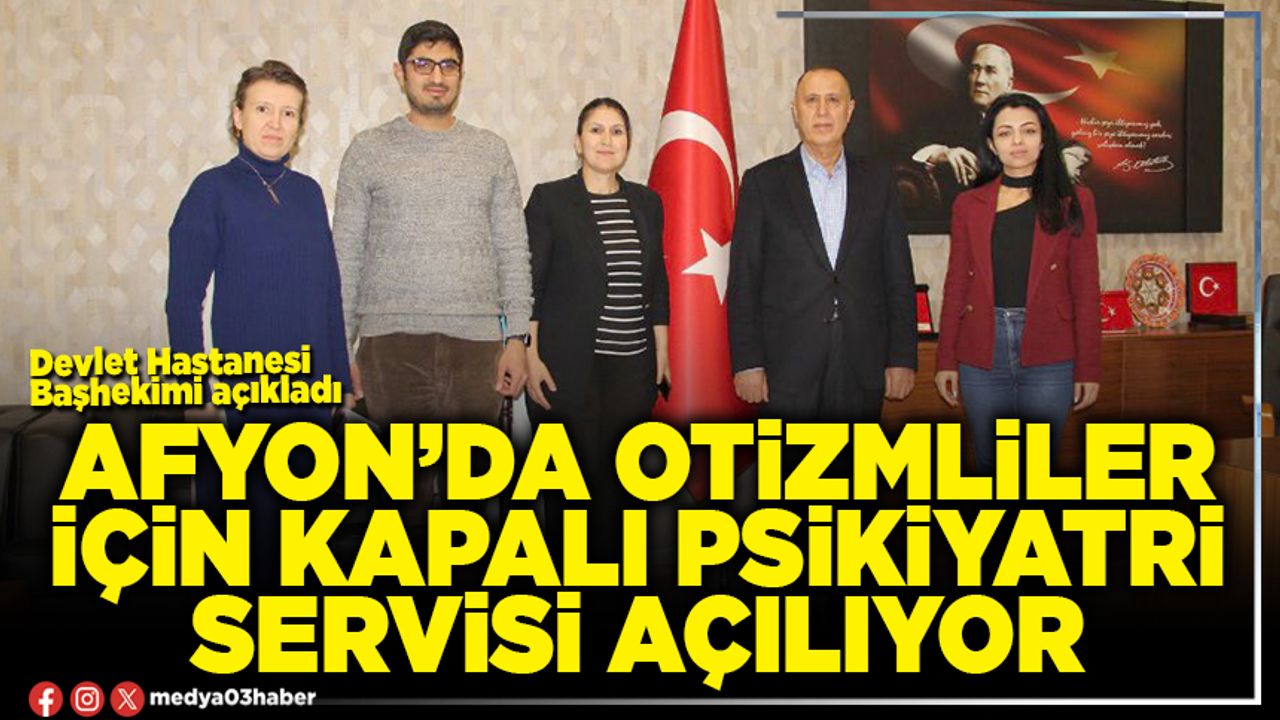 Başhekim Yardımcısı Uz. Dr. Zeliha Çopcuoğlu’nda katıldığı ziyarette Başhekim Acar, Afyonkarahisar’daki otizmli bireylerin sağlık hizmetlerine erişimini güçlendirmek amacıyla kapalı Psikiyatri Servisi’nin açılacağı müjdesini verdi. Ayrıca hastane bünyesinde Otizm Polikliniği kurulmasına yönelik çalışmaların başlatılacağını da sözlerine ekledi.