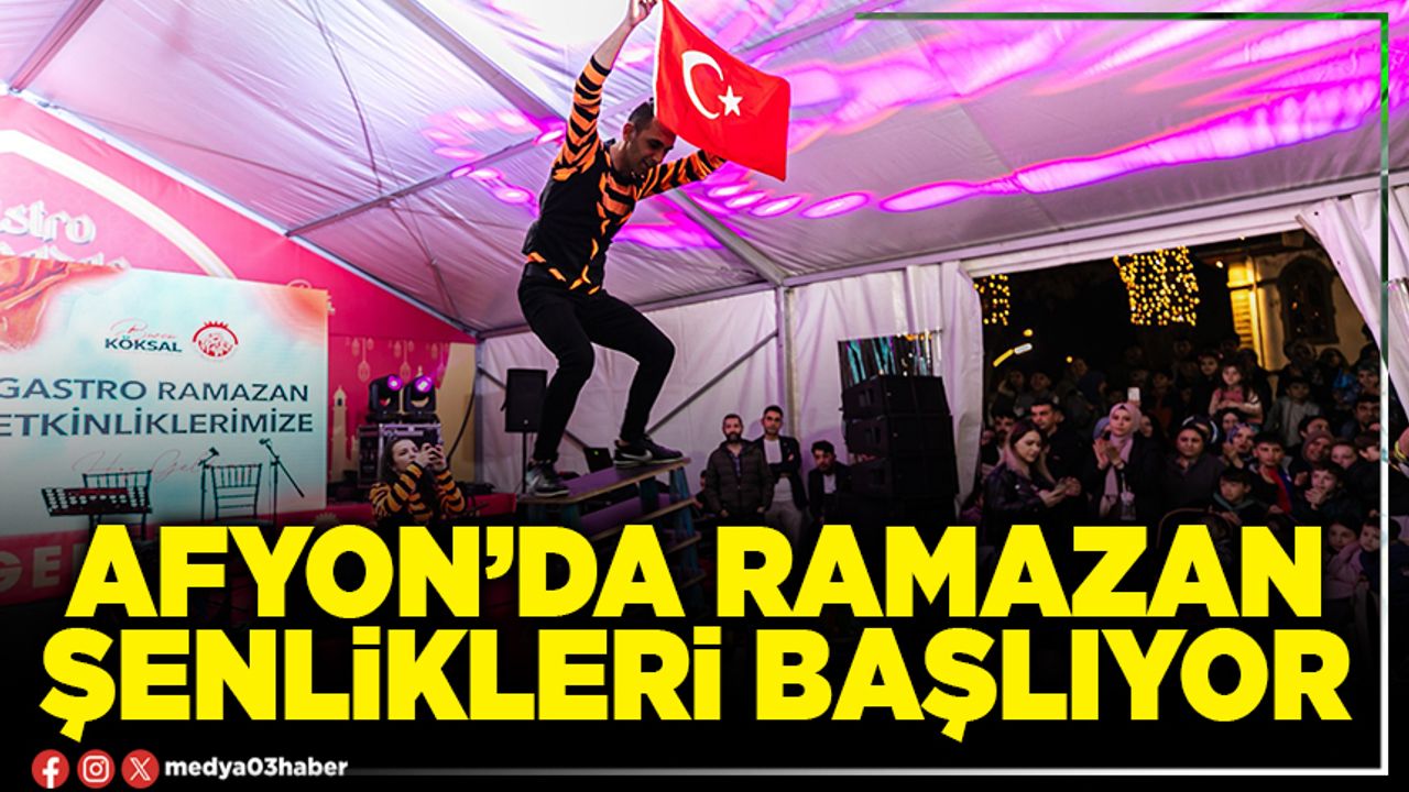 Afyonkarahisar Belediyesi bu yıl Ramazan şenlikleri kapsamında birbirinden farklı 100 farklı etkinlik düzenleyecek. Zafer Meydanı’nda gerçekleşecek etkinlikler 19 Şubat’ta başlayıp, 18 Mart 2026 tarihinde sona eercek. Etkinlikler kapsamında; ilahi, tasavvuf dinletileri, orta oyunları, fasıl, çocuk etkinlikleri, seyirli oyunlar, alışveriş çadırları ve yemek atölyeleri yer alacak.