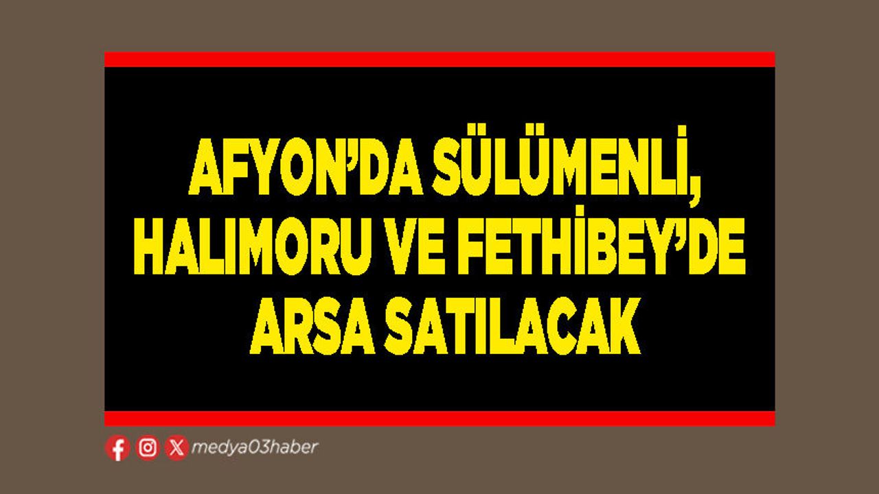 Afyon’da Milli Emlak Müdürlüğü tarafından Sülümenli, Halımoru ve Fethibey Kasabasında 16 adet arsa satışa çıkarıldı. Açık teklif usulü ile satışı yapılacak olan arsaların satışları 14 Nisan’da gerçekleşecek.