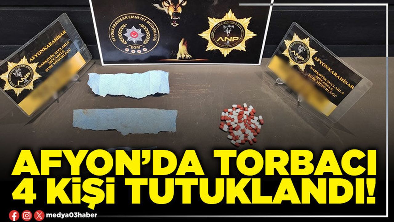 Afyonkarahisar'da polis tarafından torbacı diye adlandırılan uyuşturucu satıcılarına yönelik yapılan operasyonda 4 kişi tutuklandı.
