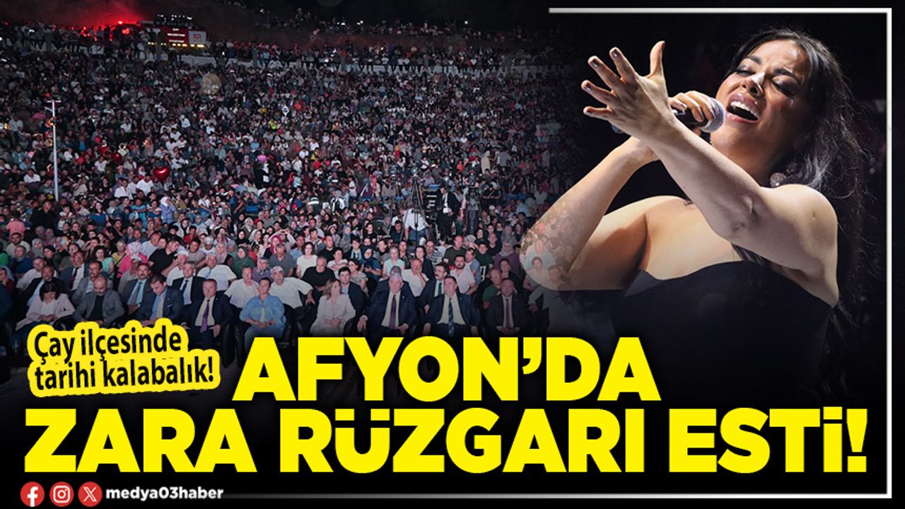 Ünlü sanatçı Zara, Afyonkarahisar’ın Çay ilçesinde bu yıl ikincisi düzenlenen Vişne ve Eber Sarısı Festivali’nde sahne aldı. Ünlü sanatçıyı görmek ve şarkılarını dinlemek isteyen binlerce vatandaş Belediye Amfi alanını hınca hınç doldurdu.