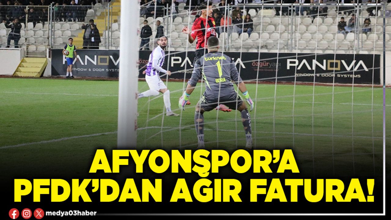 Hafta sonu sahasında oynadığı Balıkesirspor karşılaşmasında yaşanan çirkin, kötü tezahürat ve Kulüp masörünün sportmenliğe aykırı hareketi nedeniyle PFDK’ya sevk edilen Afyonspor’un cezası açıklandı.