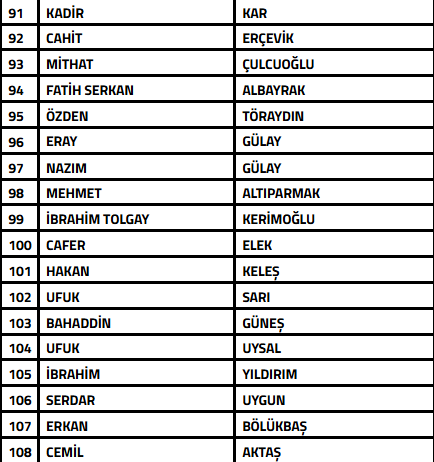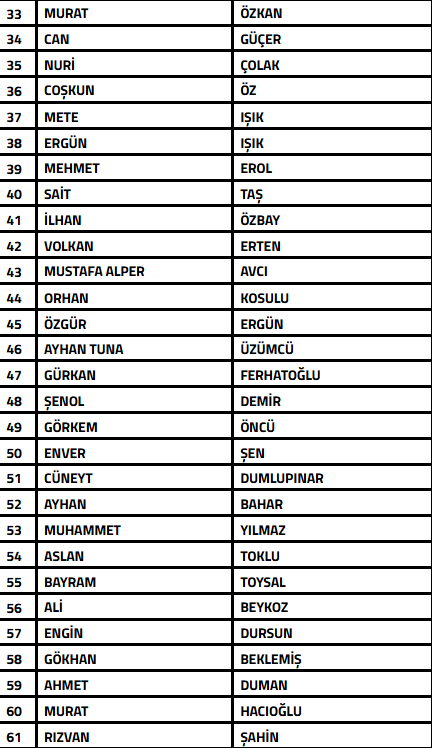 Listede; 2007 yılında Afyonspor’da görev yapan Selahattin Dinçel, 2018-2019 futbol sezonunda görev yapan Serhat Güller, 2020-2022 sezonunda görev yapan A Milli Takım eski Teknik Direktörlerinden Şenol Güneş’in kardeşi Bahaddin Güneş ve 2022 yılında görev yapan Mustafa Çapanoğlu’nun da isimleri yer aldı.