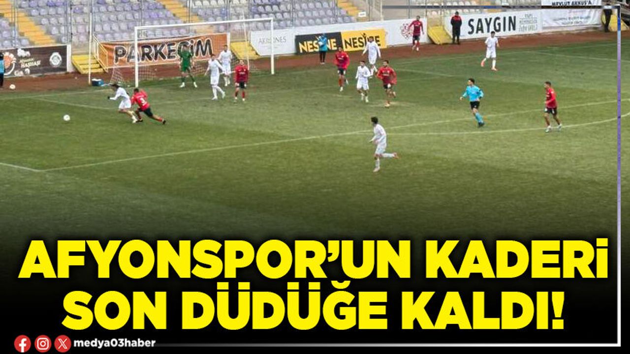 Afyonspor’un Nesine 3. Ligde kalması için bir umut doğdu. Bugün sahasında Tire 2021’i farklı mağlup eden temsilcimiz son maçta deplasmanda Altayspor’u 2 farklı skorla mağlup ederse Nesine 3. Lige tutunacak, mağlup olursa veda edecek. Beraberlik halinde ise; rakipleri İzmir Çoruhlu ile Bornova 1877'in alacağı sonuçları bekleyecek.