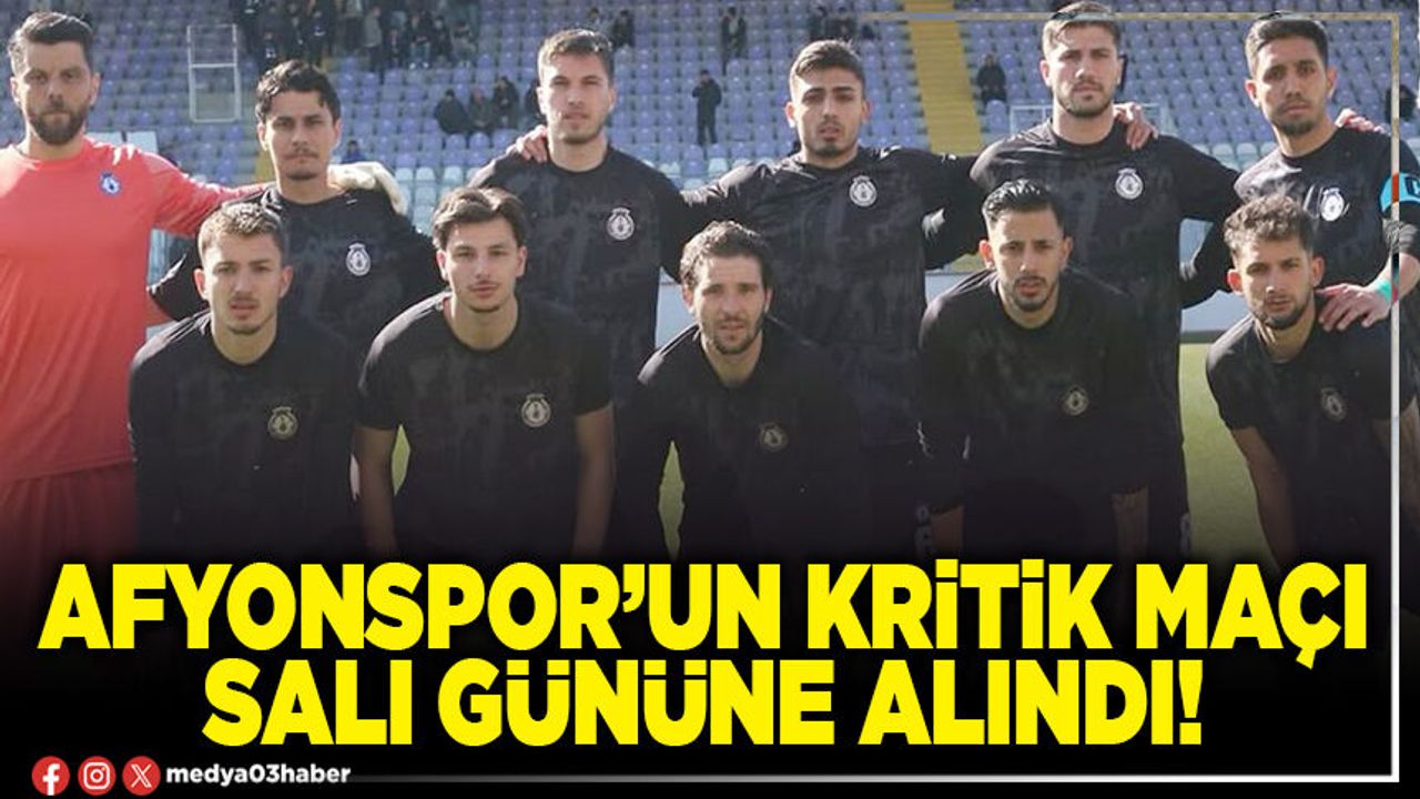 Son 5 haftasına girilen ligde 26. mücadelesinde sahasında İzmir Çoruhlu FK ile karşılaşacak Afyonspor’un maçı TFF tarafından mübarek Ramazan Bayramı nedeniyle 24 Mart 2026 Salı günü Saat 16.00’e alındı.
