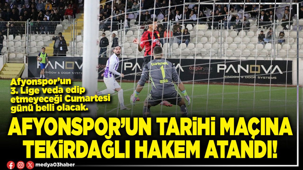 Nesine 3. Lig 4. grup kapanış maçında temsilcimiz Afyonspor Cumartesi günü deplasmanda Altay'a konuk olacak. Ligde kalma yolunda tarihi bir maça çıkacak olan Altay ile Afyonspor arasında oynanacak karşılaşmaya MHK Tekirdağ Bölgesi Klasman Hakemlerinden Levent Buğra Vartemel’i görevlendirildi. Bu tarihi maçta Vartemel’in yardımcılıklarını Burak Menteşe ile Sabri Üstünel yapacak. Cumartesi günü saat 16.00'da başlayacak karşılaşma Alsancak Mustafa Denizli Stadında oynanacak.