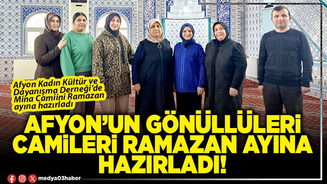 Geçtiğimiz ay Rasime Fedakar Başkanlığı’nda kurulan ve kısa sürede faaliyetleriyle adından söz ettiren Afyon Kadın Kültür ve Dayanışma Derneği’de bu anlamlı etkinliğe dernek üyeleriyle katılım sağladı. Nazmi Saatçi mahallesinde bulunan Mina Camii'nin temizliğini yapan Dernek üyeleri mübarek Ramazan ayı öncesi bir organizasyona katılmanın mutluluğunu, “Birlikte güzel, birlikte temiz.” ifaleriyle dile getirdi.
