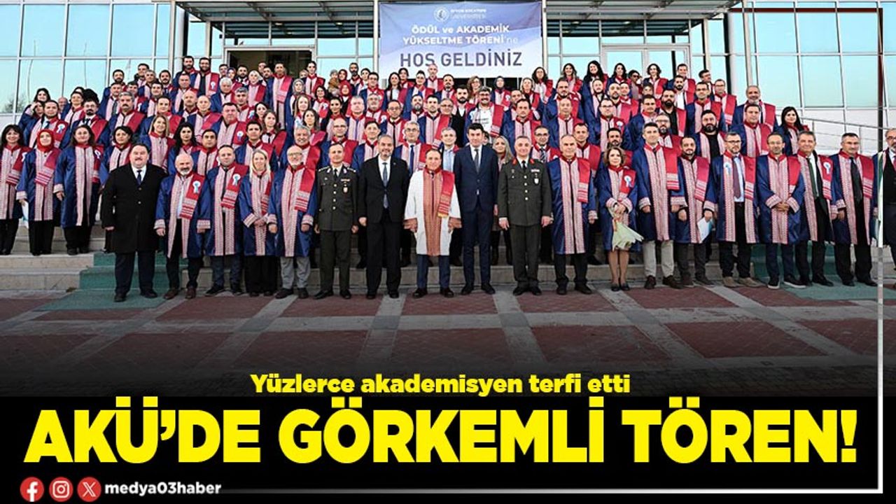 Afyon Kocatepe Üniversitesi Ödül Yönergesi kapsamında ödüle layık görülen akademik ve idari personel ile lisansüstü mezunların ödüllendirildiği törene; Afyonkarahisar Vali Vekili İhsan Ayrancı, Afyonkarahisar Belediye Başkan Yardımcısı Ömer Yıldız, Afyonkarahisar İkmal ve Garnizon Komutanı Tuğgeneral Dr. Yalçın Tecimer, AKÜ Rektörü Prof. Dr. Mehmet Karakaş, Afyonkarahisar Sağlık Bilimleri Üniversitesi Rektörü Prof. Dr. Adem Aslan, AKÜ Rektör Yardımcıları Prof. Dr. Şuayıp Özdemir, Prof. Dr. Murat Peker, Genel Sekreter Hasan Düzgün ile akademik ve idari personel katıldı.