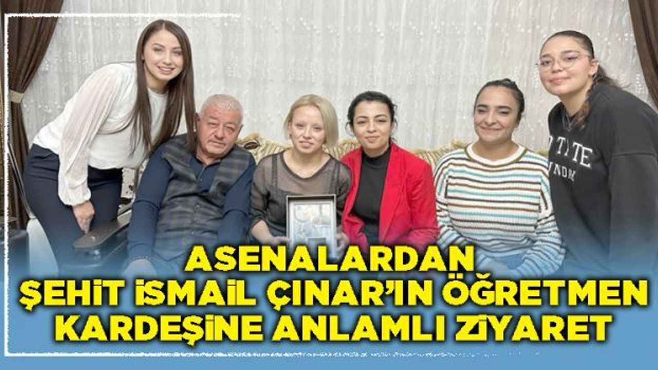 Ülkü Ocakları Afyonkarahisar İl Başkanlığı Asena Birimi, 24 Kasım Öğretmenler günü nedeniyle anlamlı ziyarette bulundu. Asena Birimi, Şehit İsmail Çınar’ın edebiyat öğretmeni olan kız kardeşi Nurhan Çınar’ı ziyaret ederek öğretmenler gününü kutladı. Ziyarette, öğretmenler günü dolayısıyla bir buket çiçek, şehidimizin fotoğrafını ve ‘Kahramanları da öğretmenler yetiştirir’ yazılı not kağıdı takdim edilerek, şehidin ailesine başsağlığı ve şükran dilekleri iletildi.