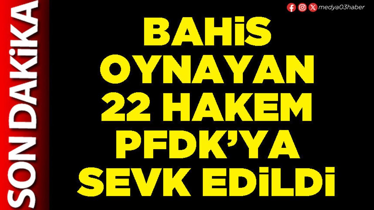 Türkiye Futbol Federasyonu’nca yürütülen bahis soruşturması kapsamında 28.10.2025 tarihinde PFDK’ya sevk edilen 152 hakem haricinde Federasyona yeni gelen belgeler doğrultusunda yapılan ilave soruşturma kapsamında bahis oynadığı tespit edilen 22 hakem tedbirli olarak PFDK'ya sevk edildi.