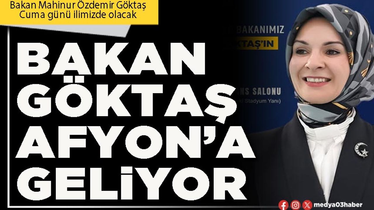 Afyonkarahisarlı Aile ve Sosyal Hizmetler Bakanı Mahinur Özdemir Göktaş, Cuma günü Afyonkarahisar'a geliyor.