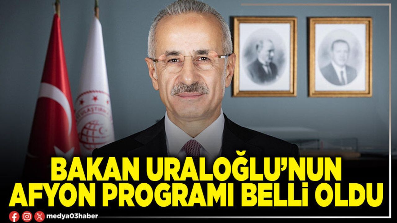 Buna göre; Bakan Uraloğlu Saat 11.00’de Çay-Karaadili-Dinar İl yolu temel atma, Çay-Bolvadin-Emirdağ yolu açılış törenine katılacak. Bakan Uraloğlu Saat 14.00 Ankara-İzmir YHT Hattı şantiyesinde incelemelerde bulunacak, Saat 16.30’da Afyon Valiliğini, son olarak Saat 17.00'de AK Parti Afyonkarahisar İl Başkanlığını ziyaret edecek.