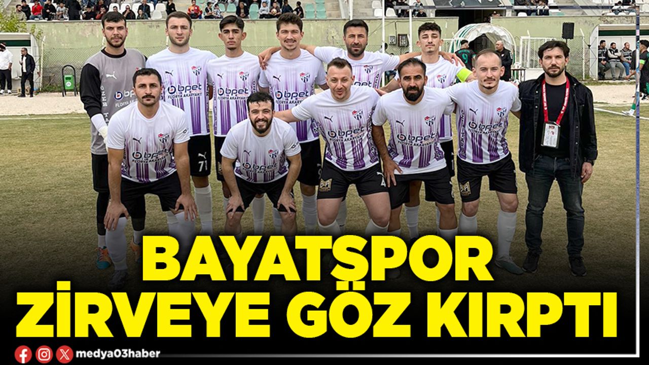 Süper Amatör Ligin yeni ekiplerinden Bayatspor oynadığı futbol ve elde ettiği galibiyetlerle dikkat çekmeye devam ediyor. 6. hafta mücadelesinde bugün sahasında Şuhut Belediye Hisarspor’u konuk eden Bayatspor rakibini ikinci yarıda bulduğu gollerle 2-0 mağlup ederek 6. maçında 5. galibiyetini elde etti ve zirveye göz kırptı.