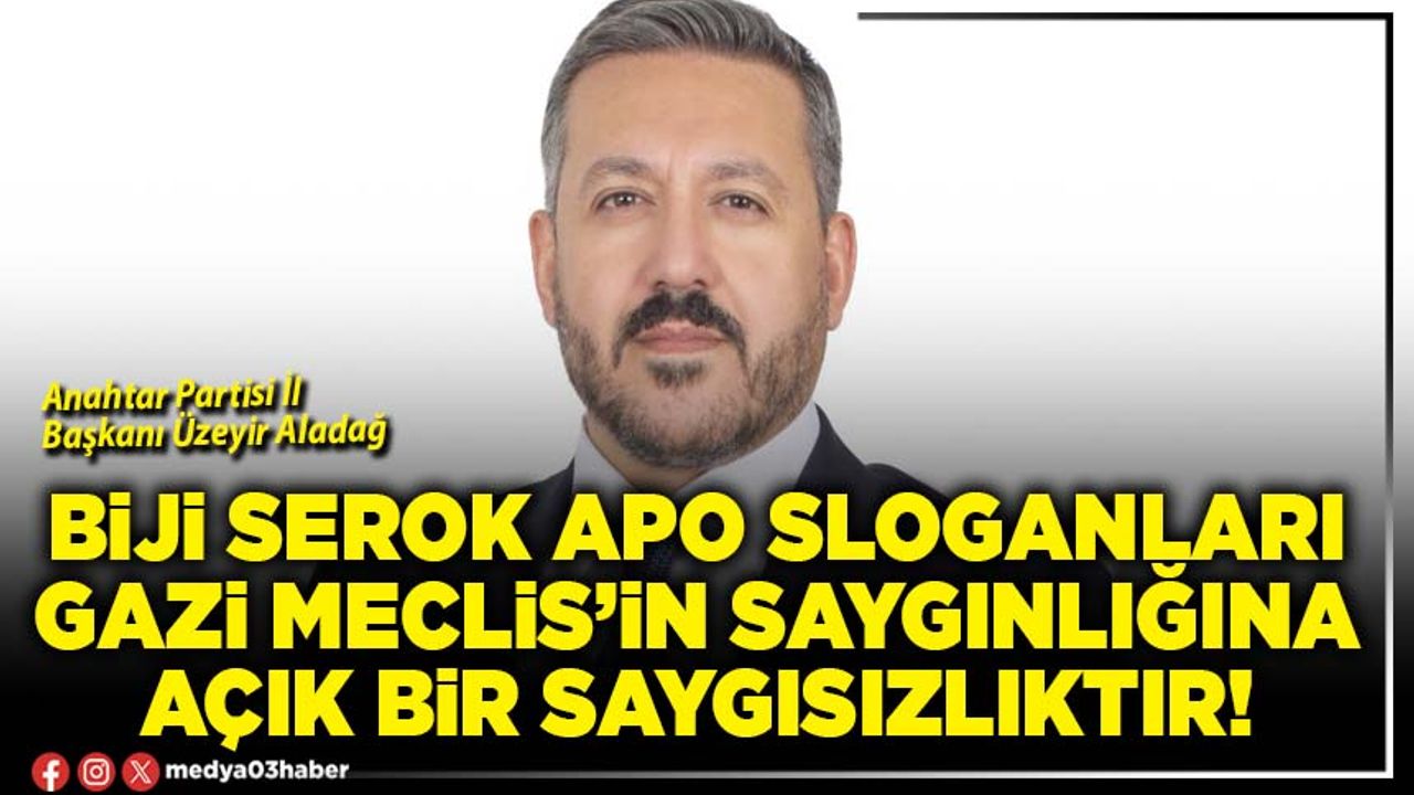 Konuyla ilgili Anahtar Parti İl Başkanı Üzeyir Aladağ’ın yaptığı açıklama şöyle: “Dem Parti Grup Toplantısında Türkiye Büyük Millet Meclisi’nde dile getirilen “Biji Serok Apo” sloganları, milletimizin birliğine, devletimizin bütünlüğüne ve Gazi Meclis’in saygınlığına açık bir saygısızlıktır.