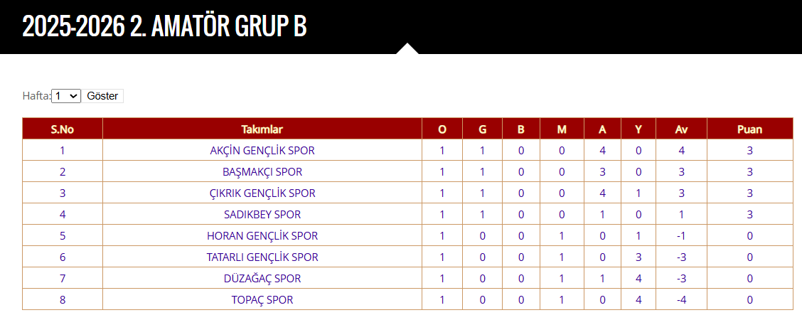 2. Amatör Küme B grubunda 2. hafta dün oynanan 4 karşılaşmayla sona erdi. Sezona iyi başlangıç yapan Sadıkbeyspor başarısını bu haftada sürdürdü ve haftanın en farklı galibiyetine imza attı. Sadıkbeyspor taraftarı önünde konuk ettiği Tatarlı Gençlikspor’u 12-0 mağlup ederek liderlik koltuğuna kuruldu.