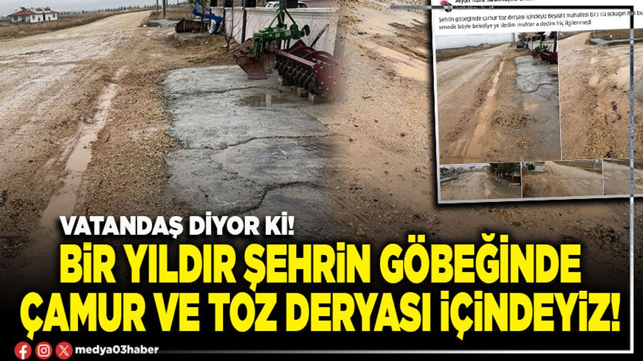 Vatandaş, “Şehrin göbeğinde çamur toz deryası içindeyiz. Beyazıt Mahallesi 873 cü sokağın hali bu. Tam bir senedir böyle. Belediye’ye dedim, Muhtar’a dedim hiç ilgilenmedi.” ifadelerini kullandı.