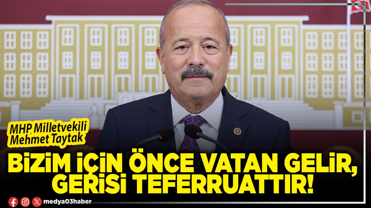CTP’nin MHP Genel Başkanı Devlet Bahçeli’yi hedef alan açıklamasına sert tepki gösteren Milliyetçi Hareket Partisi (MHP) Afyonkarahisar Milletvekili Mehmet Taytak, “Bizim için mesele siyasetin değil, vatana sadakatin meselesidir. Çünkü biz inanırız ki; önce vatan gelir, gerisi teferruattır.” dedi.