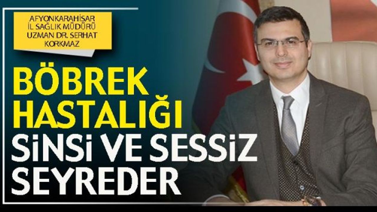 Afyonkarahisar İl Sağlık Müdürü Uzman Dr. Serhat Korkmaz, böbrek sağlığına dikkat çekerek, “Her yaşta görülebilen ancak yaş ilerledikçe görülme sıklığı artan kronik böbrek hastalığı erken teşhis edildiği takdirde, uygun bir tedavi yöntemiyle ilerlemesi engellenebilmekte ve ya yavaşlatılabilmekte ve yüksek ölüm riski azaltılabilmektedir” dedi.